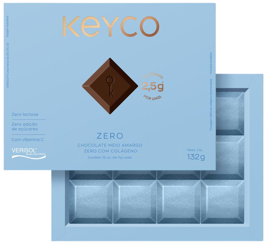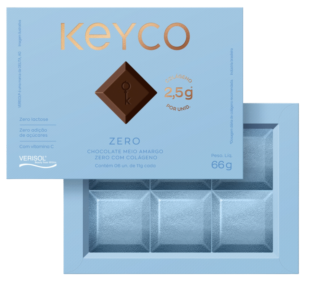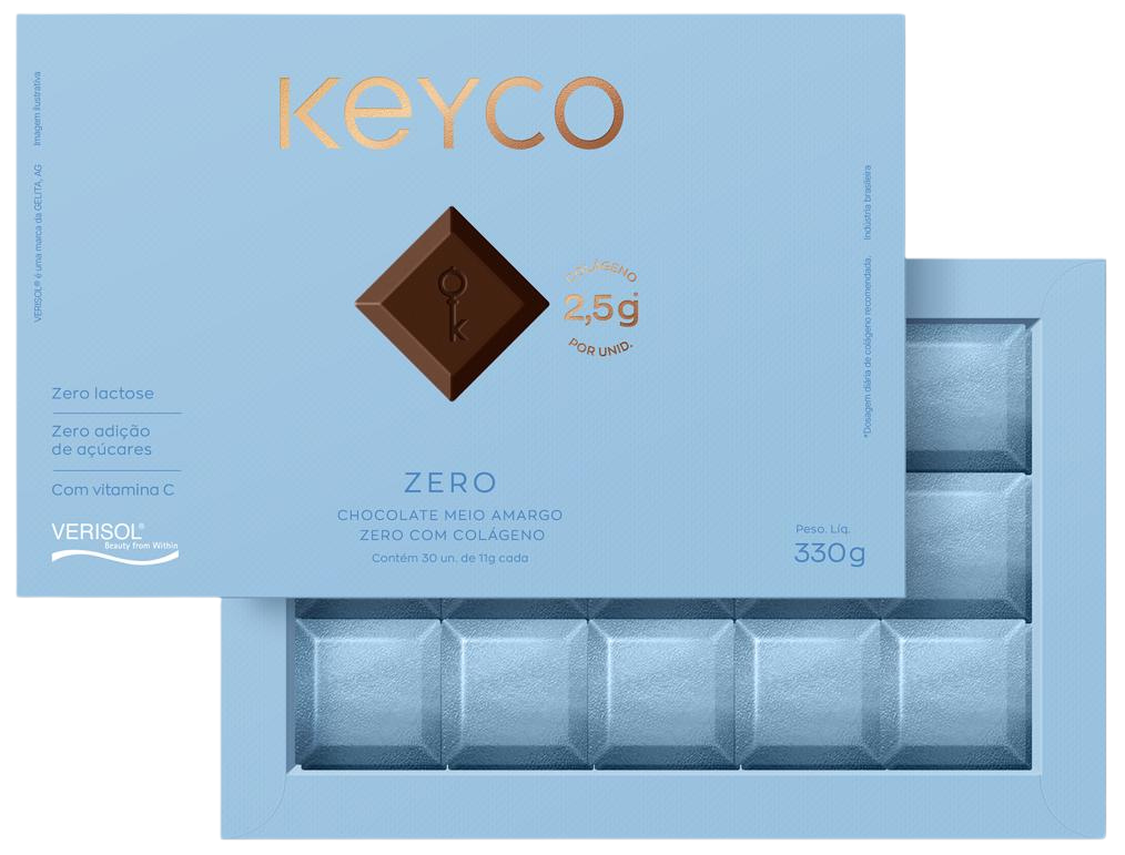 A Keyco é um suplemento de colágeno hidrolisado Verisol® com sabor de chocolate ao leite.